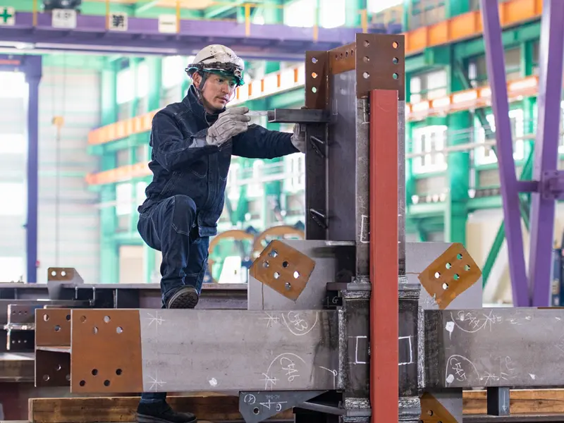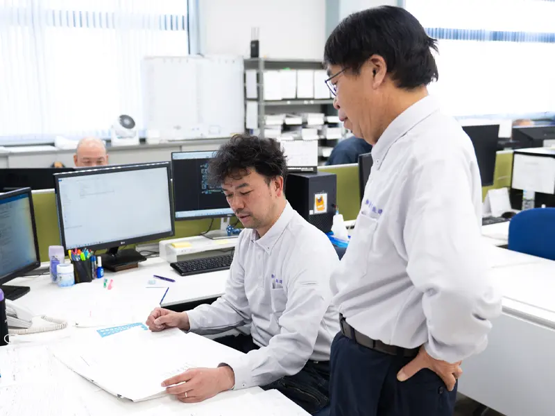 毎日の仕事が快適に効率よく進むよう、本社事務所棟・工場の環境づくりに取り組んでいます。隣り合う2つの工場では最新の設備を導入し、人が安全にゆとりを持って働ける環境を整備。広大なストックヤードは建設工事の進捗に合わせたスムーズな出荷を可能にしています。